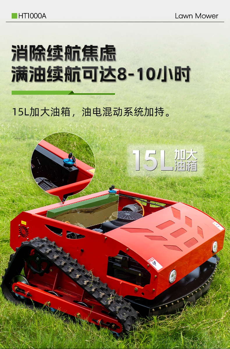 HT1000A遙控割草機(jī)滿油續(xù)航可達(dá)8-10小時(shí)