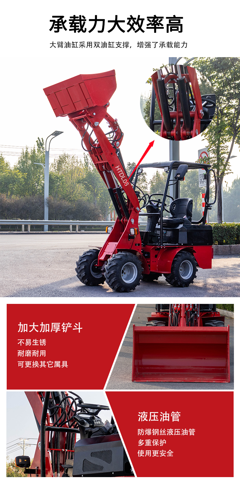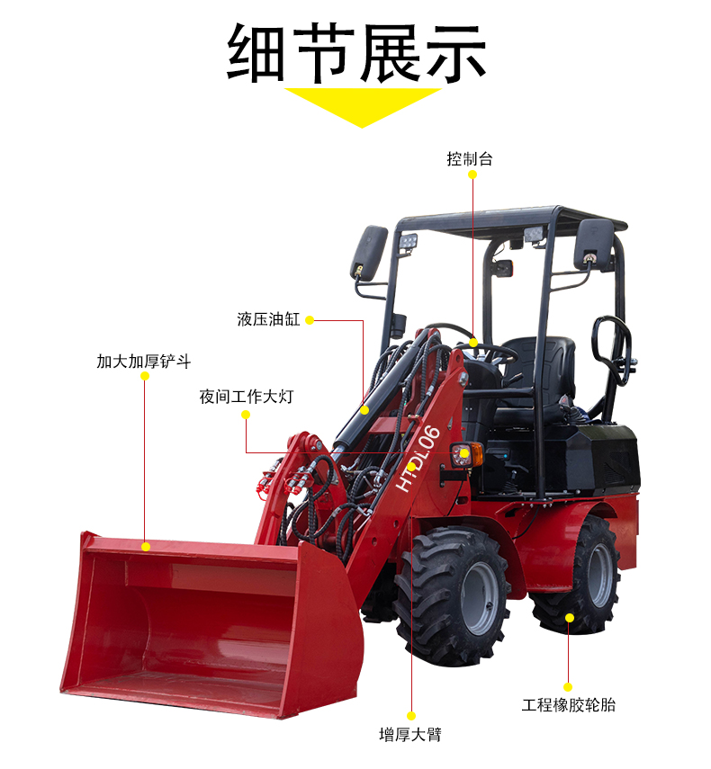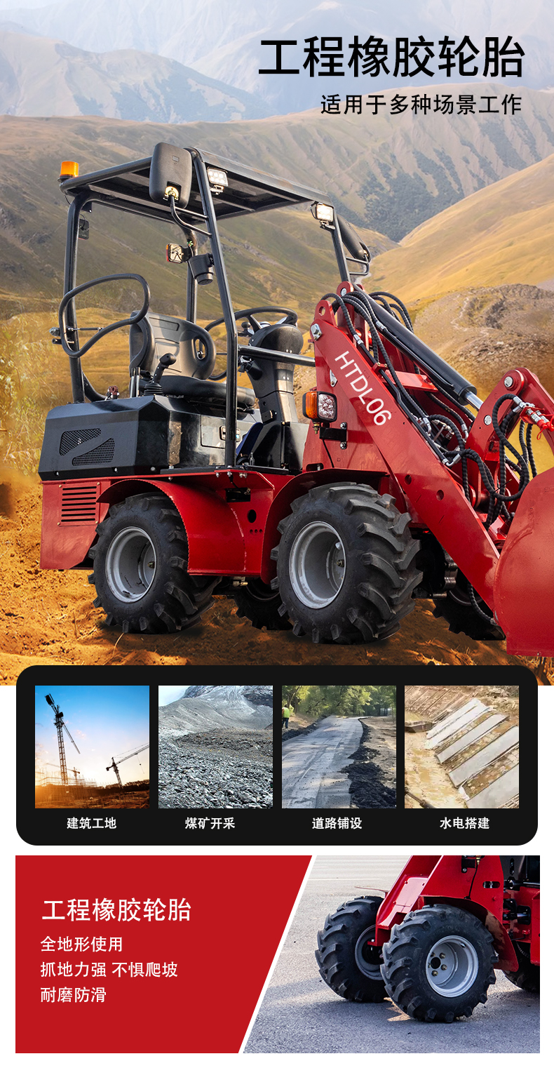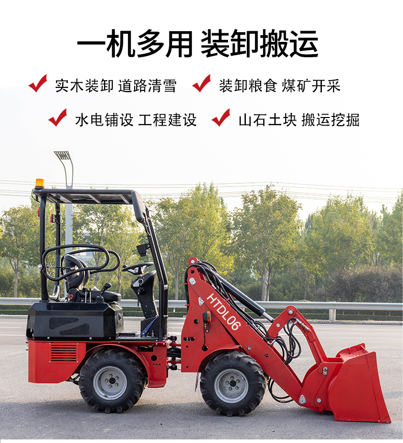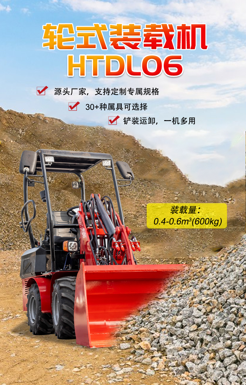HTDL06 輪式裝載機(jī)輕松裝卸,不費(fèi)吹灰之力 材料如泥土和石頭,還可以進(jìn)行輕型開(kāi)挖工作。