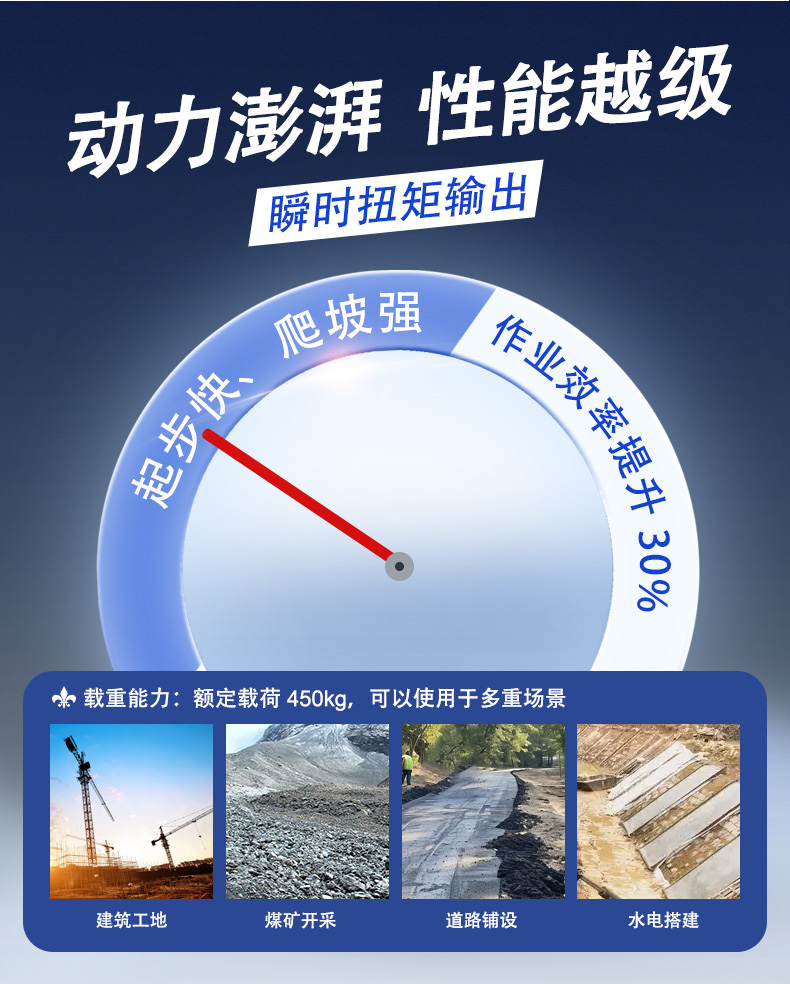 瞬時扭矩輸出:起步快、爬坡強(qiáng),作業(yè)效率提升 30%